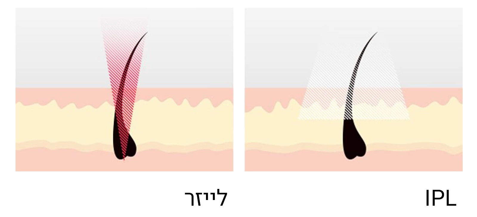 מכשירי IPL ביתיים פועלים על עקרון דומה ללייזר, אך במקום קרן אור אחת, הם פולטים פולסים רחבים של אור באורכי גל שונים. האור נספג בפיגמנט השיערה, הופך לחום ומנטרל את הזקיק.