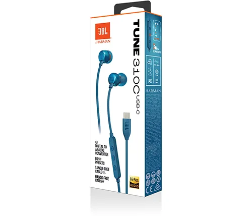 אוזניות JBL חוטיות Tune 310C USB בצבע כחול