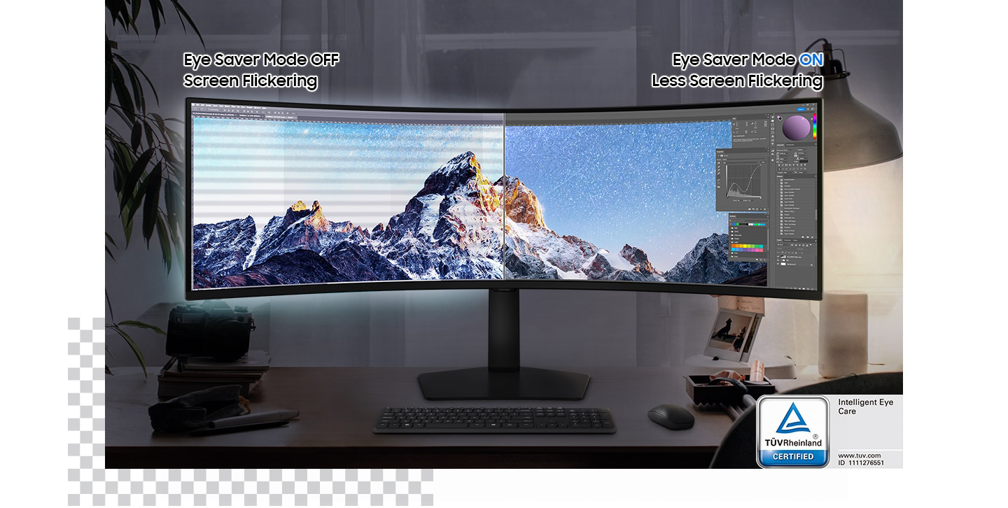 לשעות עבודה ארוכות או פרויקטים אל תוך הלילה – בהירות המסך וטמפרטורת הצבע שלו מותאמות אוטומטית לסביבה. אישור TUV מבטיח הגנה חכמה לעיניים, כולל הפחתת הבהובים ואור כחול במצב Eye Saver.
