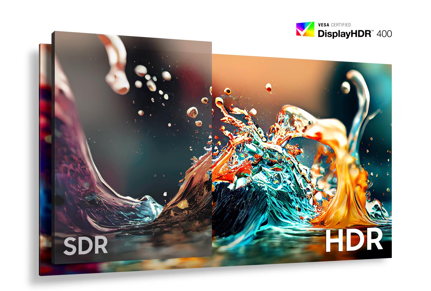 הבחינו בכל פרט ובכל גוון בעת עבודה על פרויקטי וידאו או עיצוב. תמיכה ב-VESA DisplayHDR 400 מספקת טווח דינמי רחב של שחורים עמוקים ולבנים בהירים. האזורים הכהים נראים עמוקים ומפורטים יותר, והאזורים הבהירים זוהרים בעוצמה – כך שהעבודה שלכם מוצגת בחדות ובאיכות מרשימה.