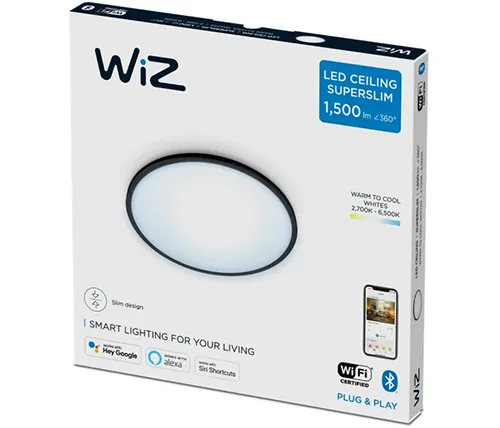 צמוד תקרה חכם אלחוטי WiZ Superslim Ceiling 16W 2700K-6500K בצבע שחור
