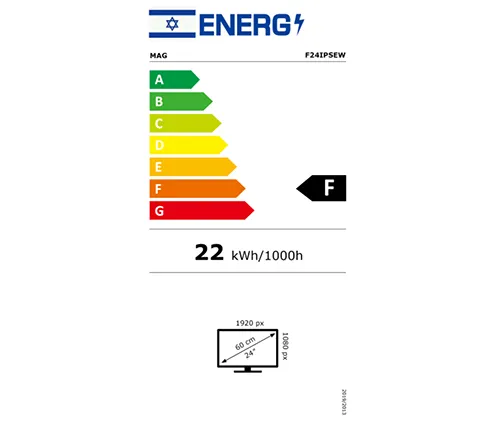 מסך מחשב Mag בגודל "23.8 דגם F24IPSEW, פאנל LED IPS, רזולוציה 1920x1080 Full HD, זמן תגובה 2ms, עם חיבורי HDMI ו - VGA, כולל רמקולים מובנים
