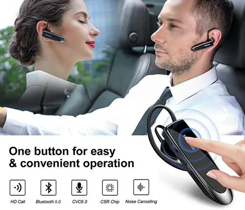 אוזניית New Bee Bluetooth דגם B41, האוזניה תומכת חיבור לשני מכשירים בו זמנית, כוללת מערכת סינון רעשים מתקדמת להקלטה איכותית וסוללה עד 24 שעות שיחה