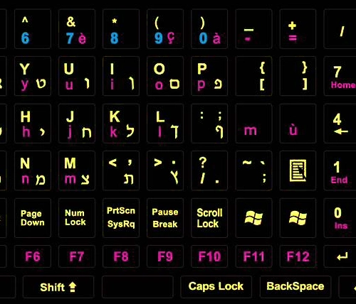 מדבקות זוהרות למקלדת צרפתית עברית אנגלית בצבע שחור Ivory Peripherals