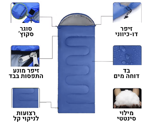 שק שינה לטיולים וקמפינג 2.4 ק"ג BOXER בצבע כחול שק שינה לטיולים וקמפינג 2.4 ק"ג BOXER בצבע כחול שק שינה לטיולים וקמפינג 2.4 ק"ג BOXER בצבע כחול
