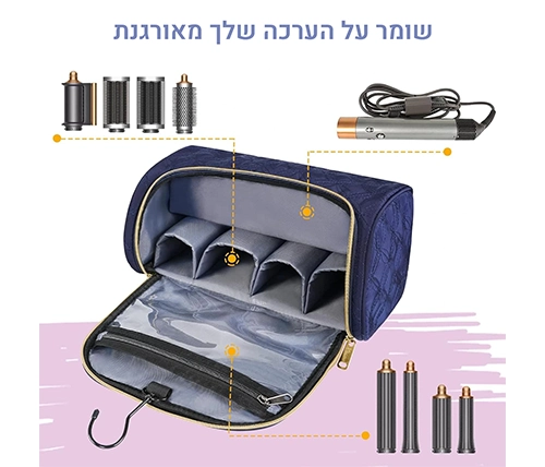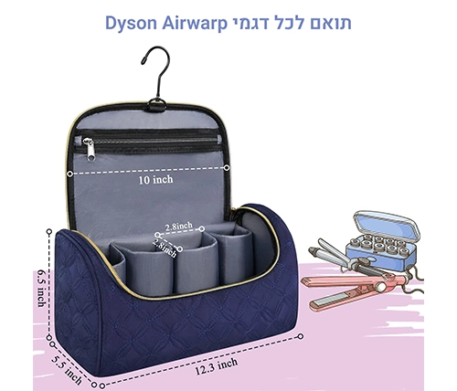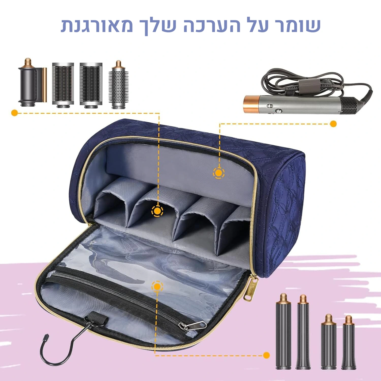 מתאים לכל דגמי Dyson Airwrap: תואם לכל גרסאות ה-Dyson Airwrap וכולל כיסים נוספים לאחסון כלים כמו חיבורים ארוכים, קליפסים, ועוד
