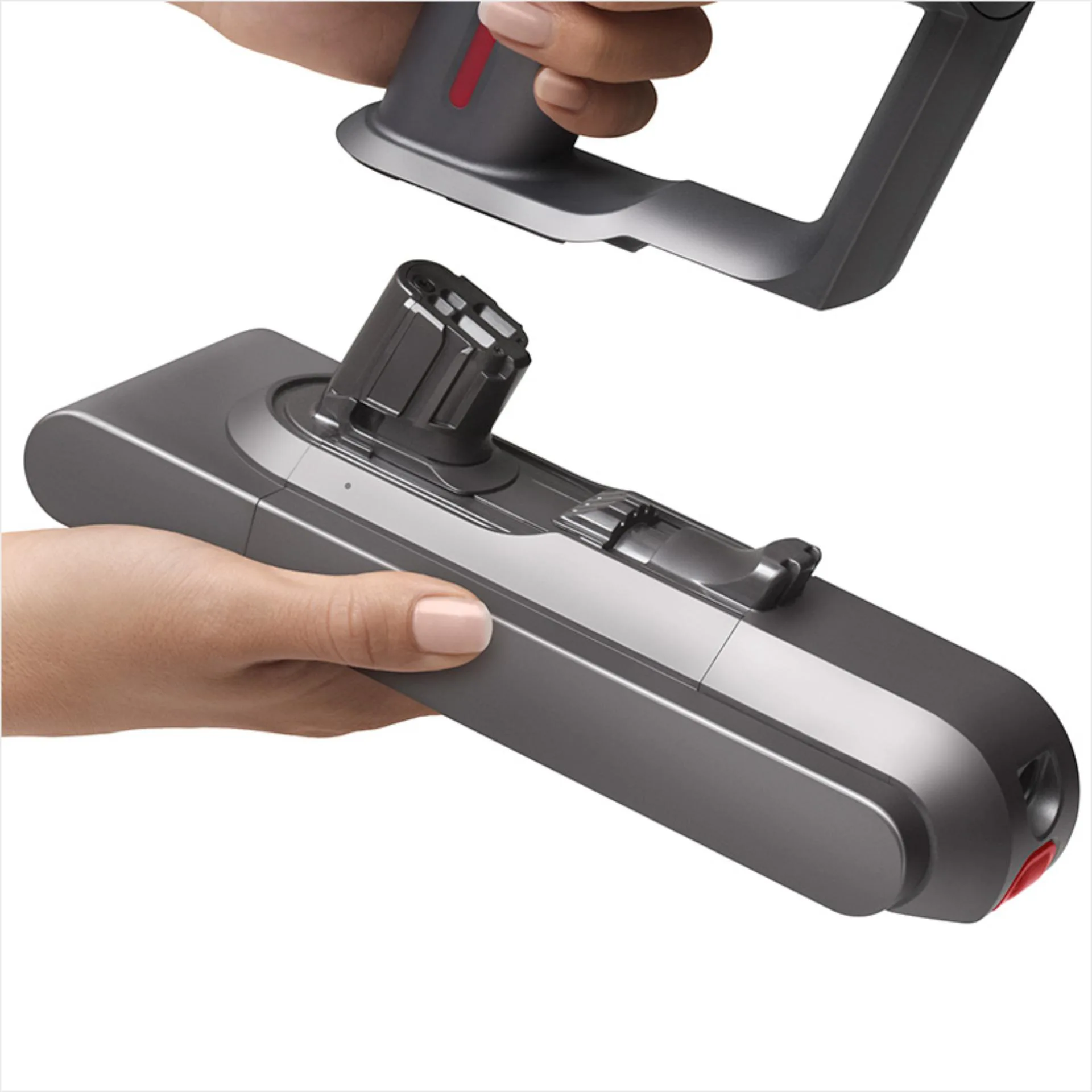 סוללה מתקדמת בת 10 תאים מספקת את זמן הריצה הארוך ביותר של Dyson בשואב אלחוטי. בעוד מצב המתנה וכימיה מתקדמת של הסוללה ממקסמים את תוחלת החיים שלה.