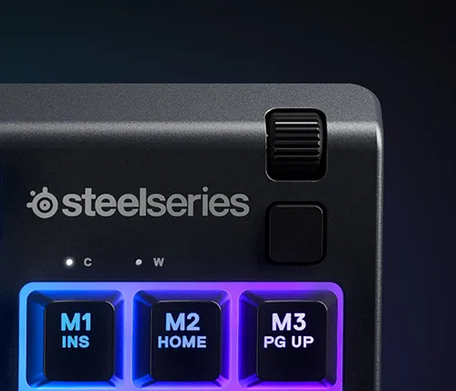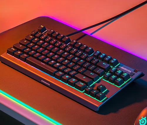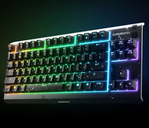מקלדת גיימינג עם תאורת RGB ועמידות למים עברית אנגלית Steelseries Apex 3 TKL צבע שחור