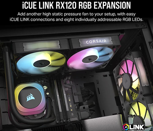 מאוורר מארז להרחבה 12 ס"מ Corsair iCUE LINK RX120 RGB בצבע שחור
