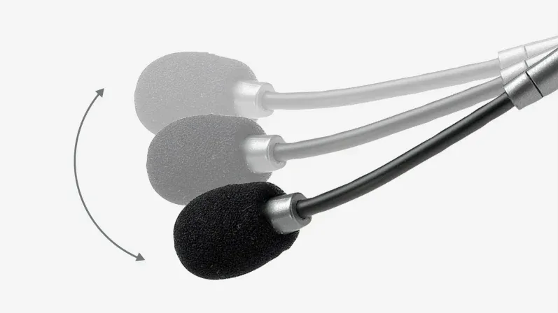 ניתן להסתובב 180° כדי למקם אותו משמאל או ימין מיקרופון גמיש ללכידת קול טובה יותר והפחתת רעשי רקע ניתן להרחיק כשאינך משתמש בו.