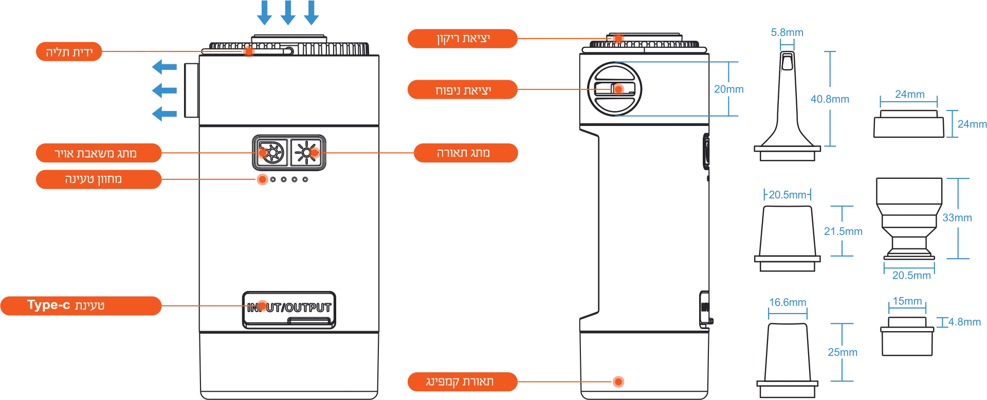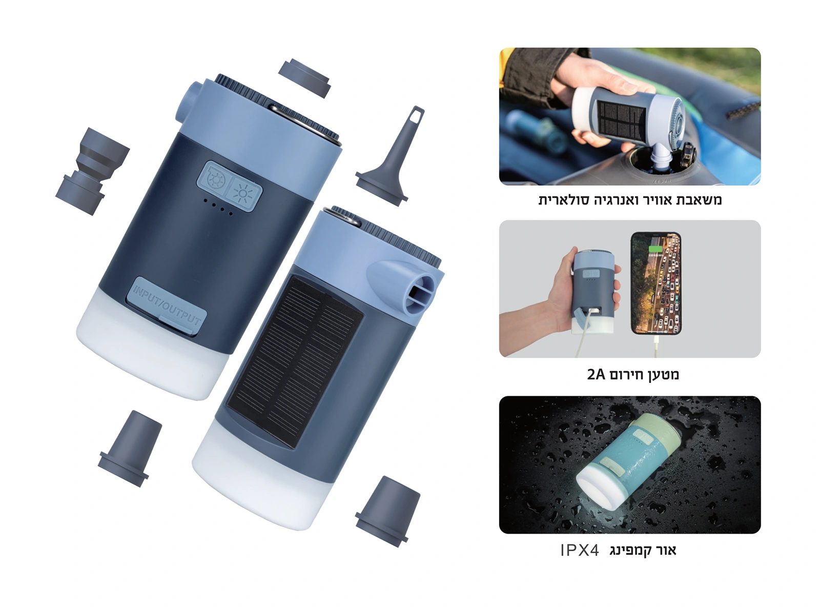 משאבת אוויר סולארית ניידת עם פנס וסוללת גיבוי Boxer AIRPUMP2 4000mAh USB-C