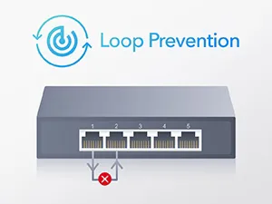 חוסם את היציאות באופן אוטומטי כאשר הוא מזהה לולאה ברשת, ומונע השבתה הנגרמת כתוצאה מפעולה שגויה.