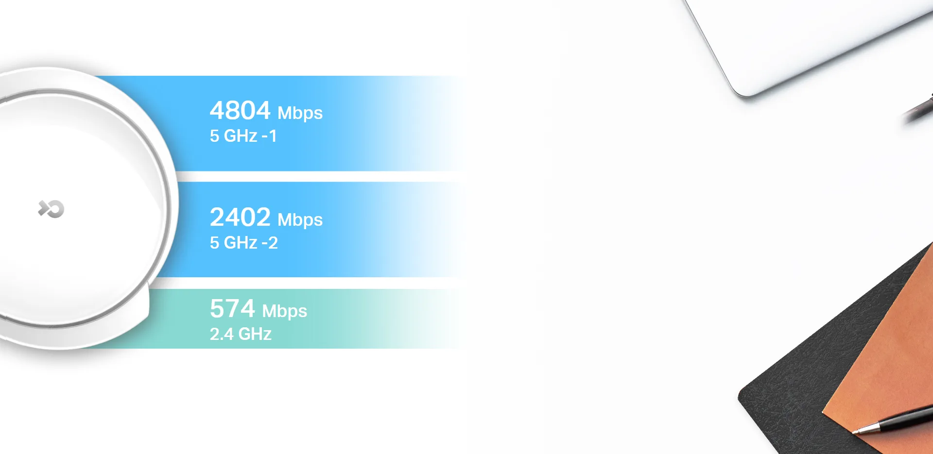 • 8 זרמים, פחות פיגור - 4×4/HE160 4804 Mbps + 2×2/HE160 2402 Mbps + 2×2 574 Mbps