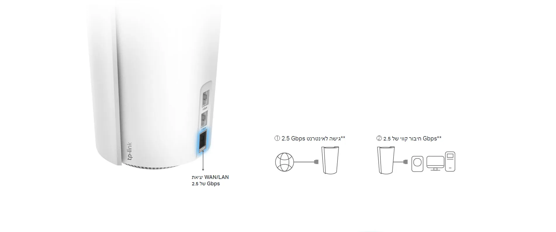 • חיבורים קוויים של עד 2.5Gbps - יציאת 1 × 2.5Gbps + יציאת 2 × Gigabit מציעים שידורי נתונים במהירות גבוהה.