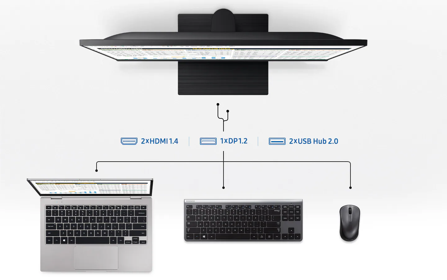 מגוון כניסות מספק חוויית עבודה נוחה וגמישה. עם שני חיבורי HDMI 1.4 ו-DisplayPort, תוכלו ליהנות מהיכולת לחבר מספר מכשירים ישירות למסך.