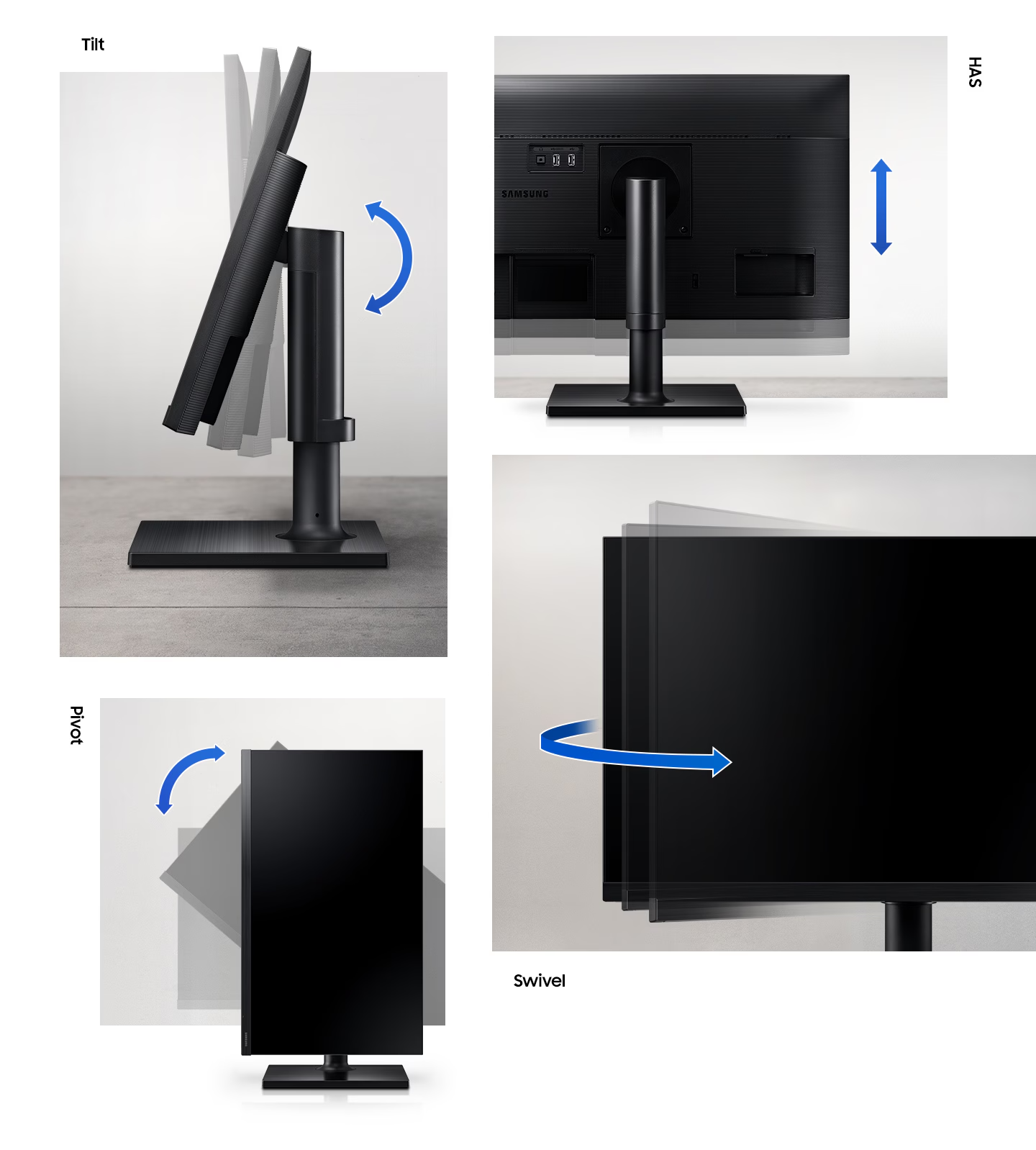 עיצוב מתקדם שמעניק גמישות מושלמת לשימוש יומיומי. המסך המתכוונן בגובהו גם מסתובב, נוטה ומסתובב אנכית, כך שתוכלו לראות את העבודה שלכם מכל זווית שתרצו. העיצוב הנקי והאלגנטי מוסיף טאצ' של סטייל למשרד, והוא גם תואם VESA להתקנה קלה.