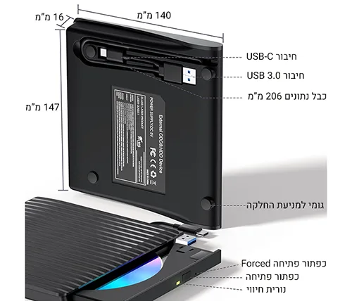 מציאון - צורב חיצוני Ivory Peripherals OPT-002 CD / DVD חיבור USB-A / UAB-C - מוחדש