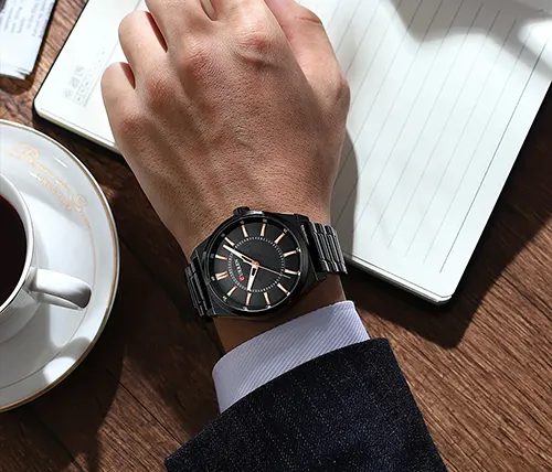 שעון יד אנלוגי לגבר 44 מ''מ Curren צבע שחור דגם CRN-M8407BLKMTL