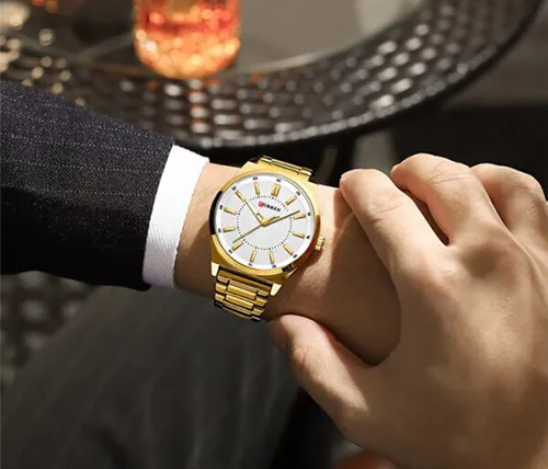 שעון יד אנלוגי לגבר 44 מ''מ Curren צבע זהב דגם CRN-M8407GOLD