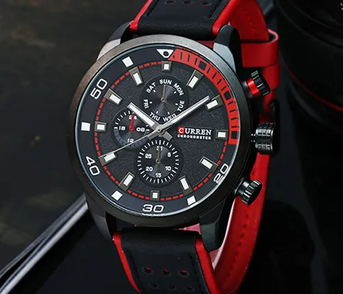 שעון יד אנלוגי לגבר 45 מ''מ Curren צבע שחור/אדום דגם CRN-M8250BLKRED