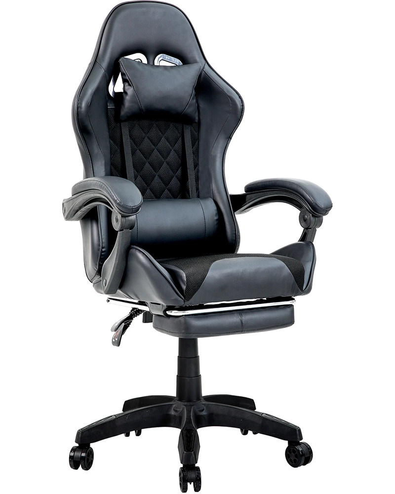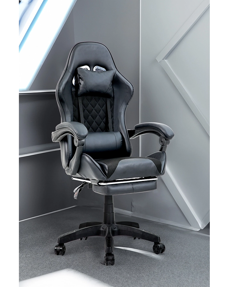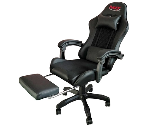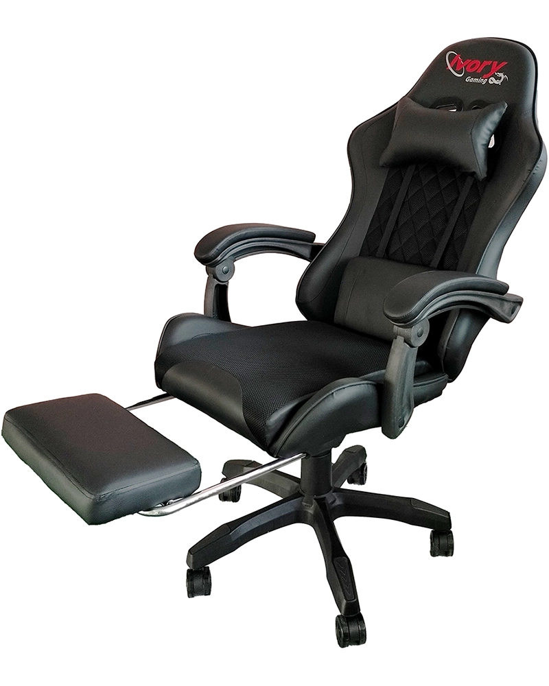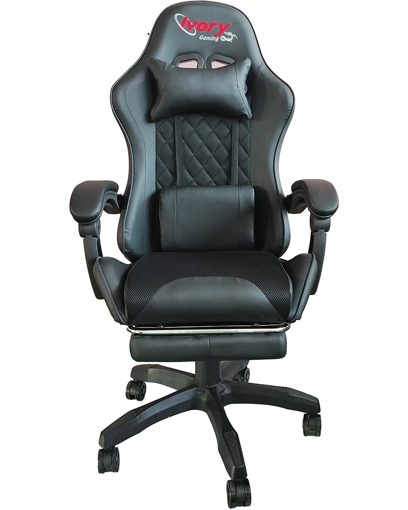 כיסא גיימינג ארגונומי עם הדום לרגליים דמוי עור בצבע שחור Ivory Gaming RACE 1