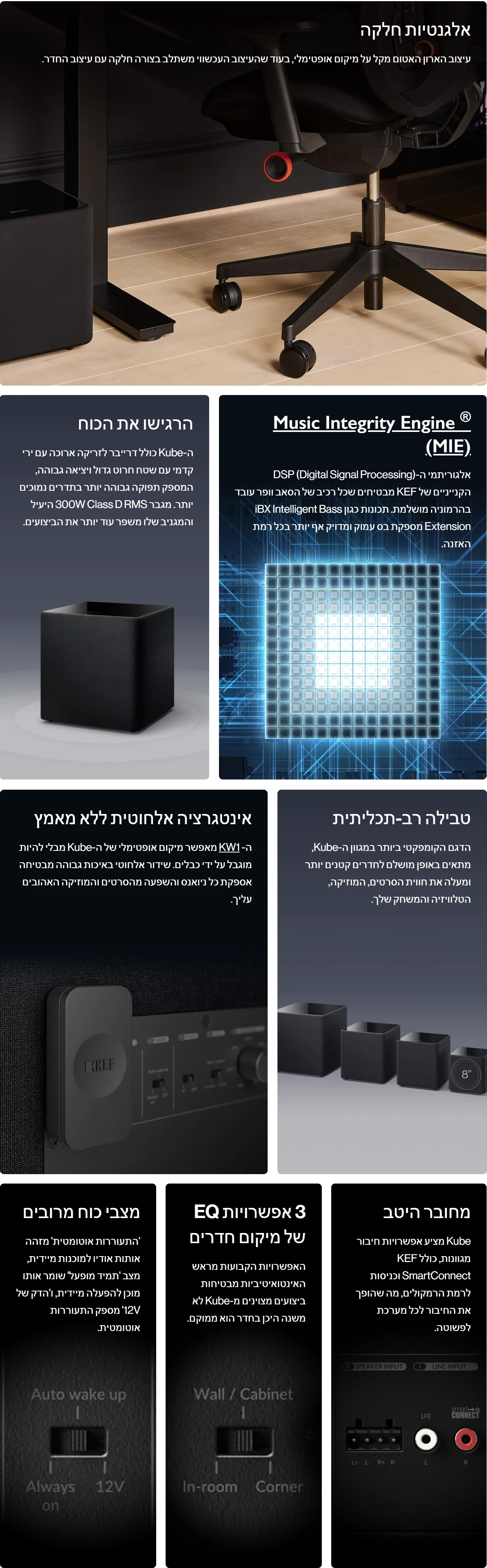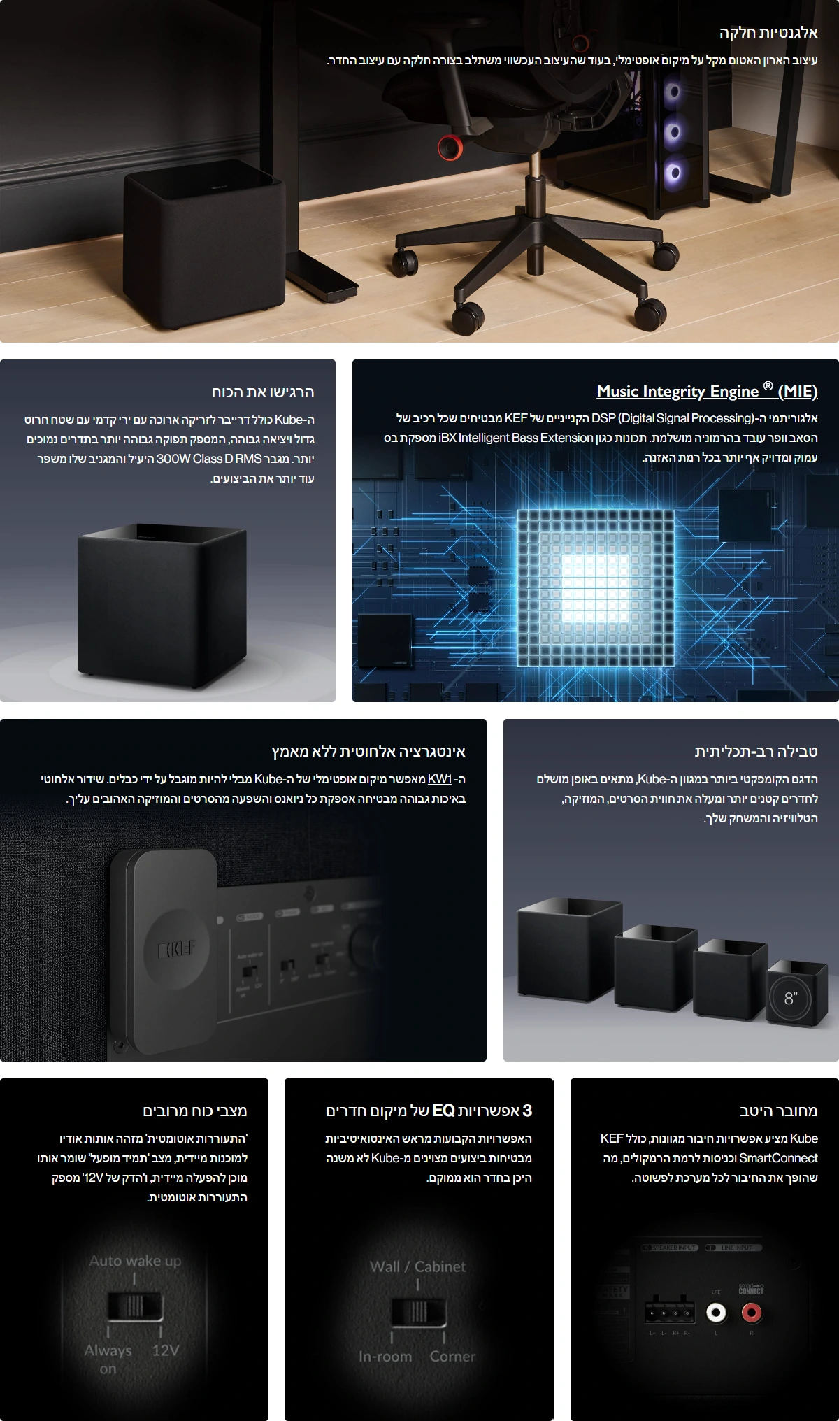 סאבוופר אקטיבי 8 אינץ' KEF Kube 8 MIE Active Subwoofer בצבע שחור – משלוח חינם