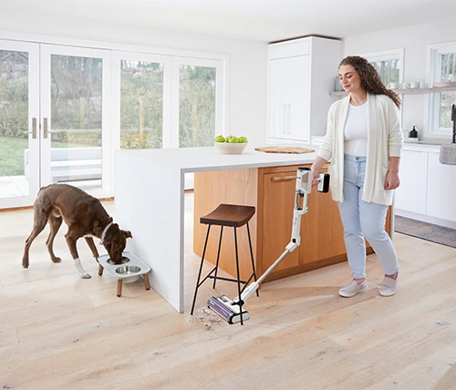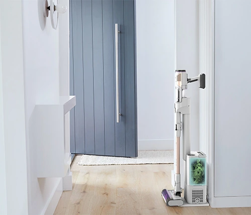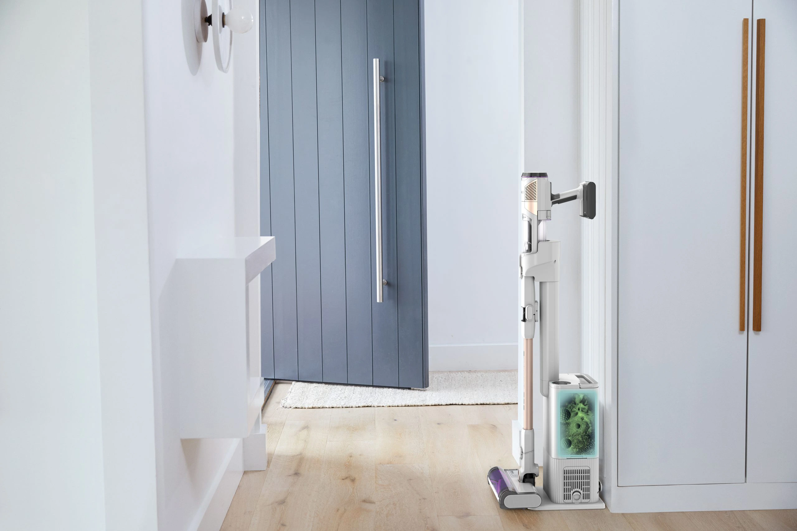פשוט הציבו את השואב על הבסיס בסיום הניקוי והוא ירוקן את עצמו באופן אוטומטי, שוב ושוב. נשמו בקלות עם חשיפה עד 340x פחות לאבק לעומת ריקון מסורתי.