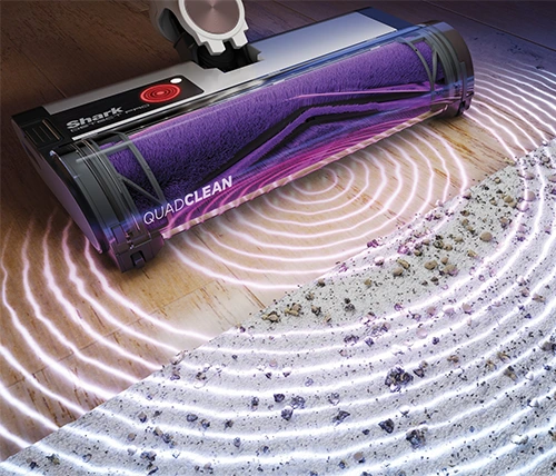 מברשת QuadClean לניקוי משטחים מרובים מנקה לעומק את כל סוגי הרצפות – ללא צורך בהחלפה. עיצוב ייחודי זה כולל קצה קדמי מוגבה לשאיבת פסולת גדולה, שיניים להרמת לכלוך ושיער טמון, צלעות תסיסה לשחרור לכלוך עדין, ומיקרופייבר רך ללכידת אבק עדין.