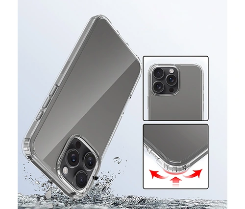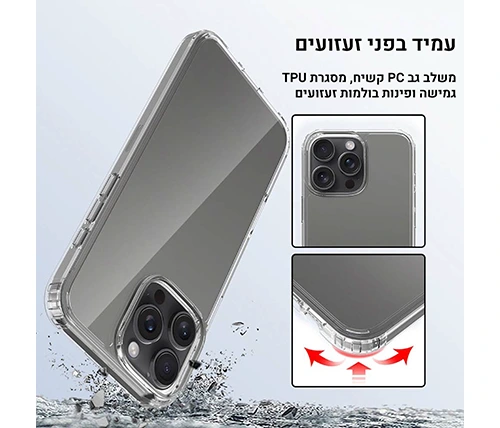 כיסוי אחורי שקוף לאייפון 16 פרו מקס מבית Ivory Mobile, בגודל 6.9 אינץ', עם הגנה כפולה נגד שריטות וטביעות אצבע. כולל לוח אחורי קשיח, TPU גמיש, פינות בולמות זעזועים והגנת מסך ומצלמה עם קצה מוגבה