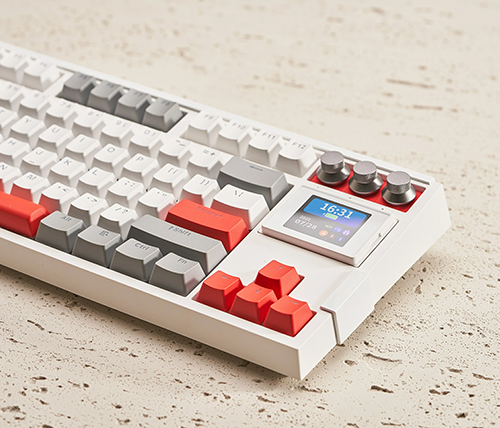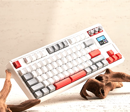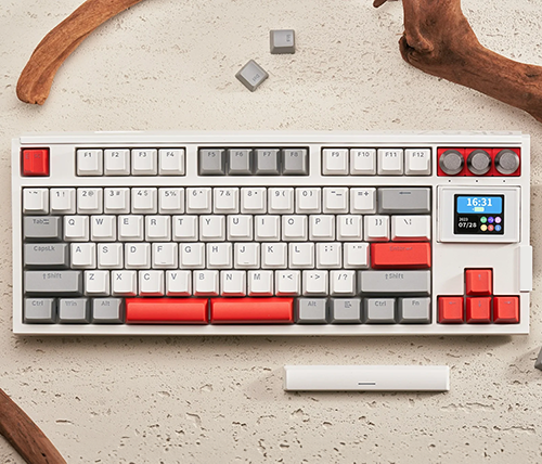 מקלדת גיימינג GK87 Pro אלחוטית מכנית עם צג סוויץ' Gateron G Pro 3.0 Yellow בצבע לבן