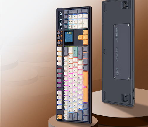מקלדת גיימינג GK104 Pro אלחוטית מכנית עם צג סוויץ' Gateron G Pro 3.0 Yellow בצבע אפור