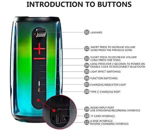 מציאון – רמקול קריוקי נייד SP6001 RGB Bluetooth כולל מיקרופון אלחוטי – מוחדש