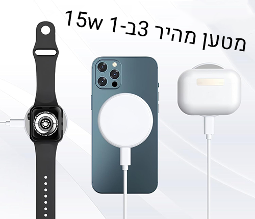 כבל טעינה מגנטי 3 ב-1 Ivory Connect תואם MagSafe הספק עד 15W כולל כבל USB-C באורך 1 מטר