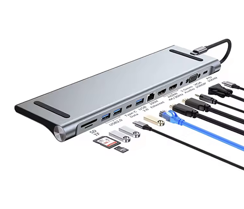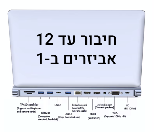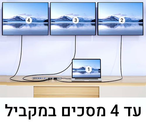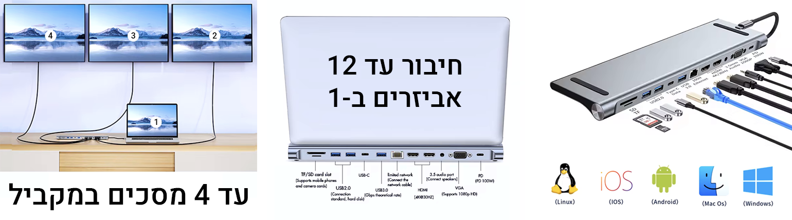 תחנת עגינה אוניברסלית שולחנית למחשב נייד לחיבור עד 3 מסכים נוספים וחיבור רשת - IVORY CONNECT USB3.0X4