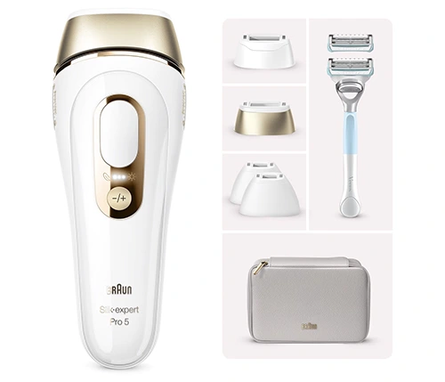 • שימוש בטוח: ה-Braun Silk-Expert Pro 5 מנתח את גוון העור האישי שלך באמצעות טכנולוגיות SkinPro 2.0 ו-SensoAdapt™ 80 פעמים בשנייה, ומתאים את עוצמת הטיפול בצורה מדויקת לכל אזור.