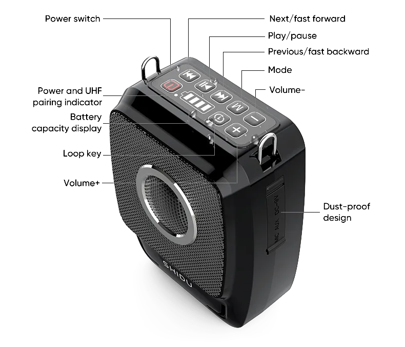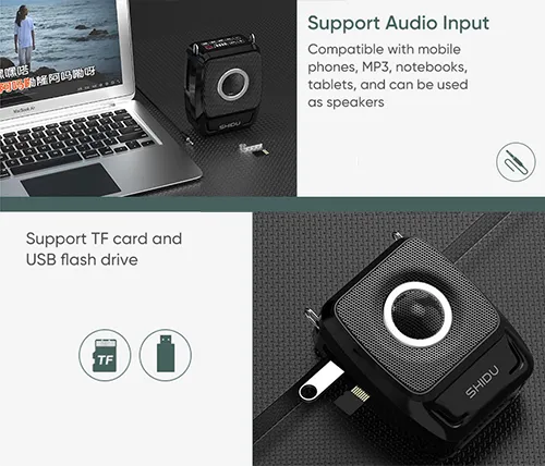 חגורת הגברה למורים ומדריכים עבור העברת הדרכות כוללת מיקרופון מדונה חוטי - SHIDU Portable Speaker 25W