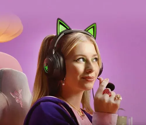 אוזניות גיימינג עם מיקרופון Razer KRAKEN KITTY V2 - בצבע שחור