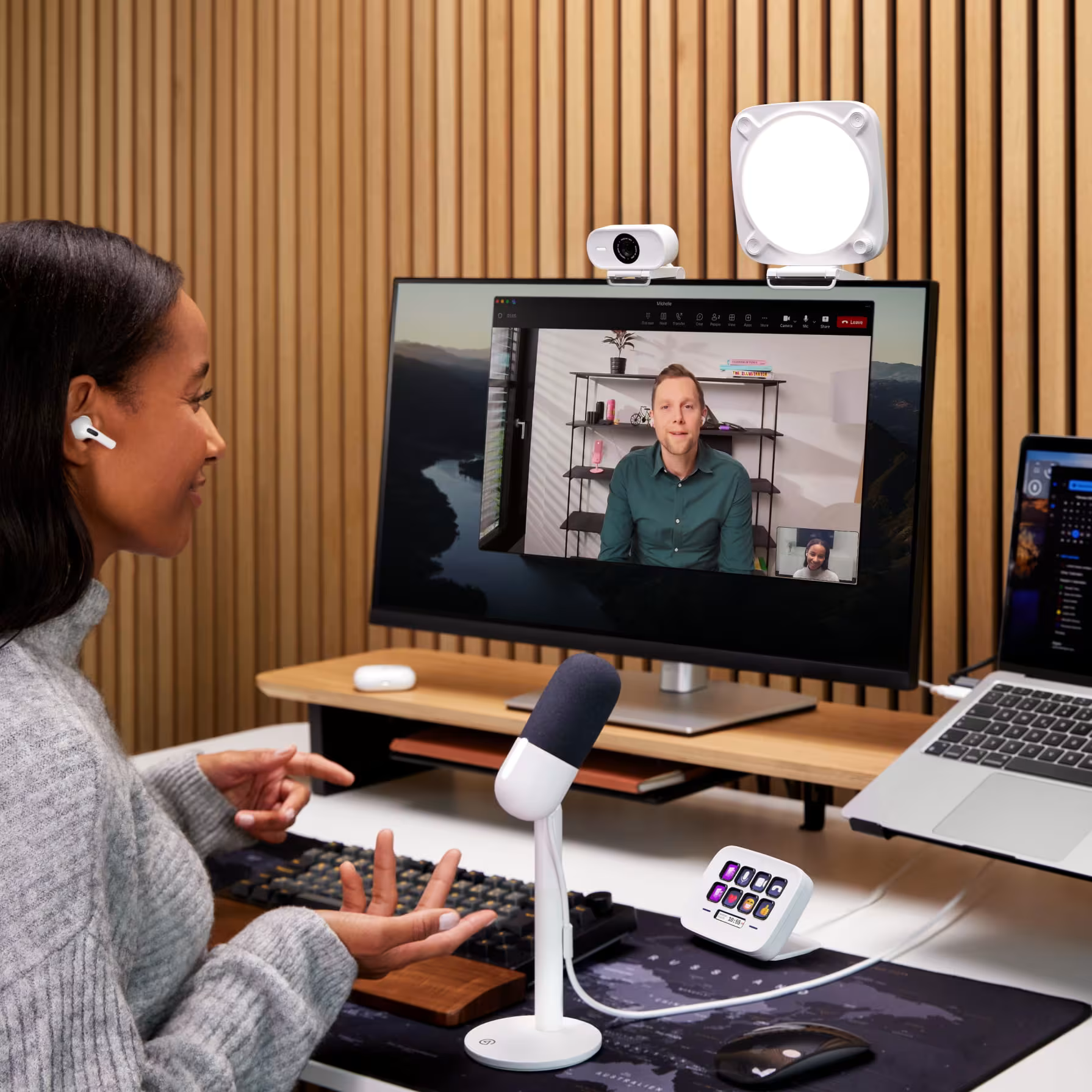 רזולוציית Full HD ב-60 פריימים בשנייה. Facecam Neo קולטת יותר פרטים עם פחות טשטוש תנועה בהשוואה למצלמות רשת של מחשבים ניידים.