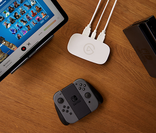 שמור על עמדה מינימליסטית ושחק דרך אפליקציית הקלטת הווידיאו שלך—אין צורך במסך משחק. פשוט חבר את האייפד שלך באמצעות כבל USB-C* או מתאם*.