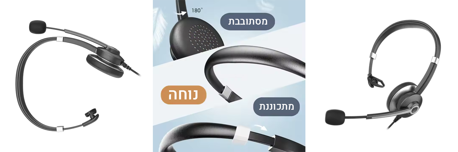 מיקרופון מדונה מומלץ למוקד טלפוני, מגיע עם מחבר USB וקשת מרופדת MIZUKI Call Center Headset MHP-683