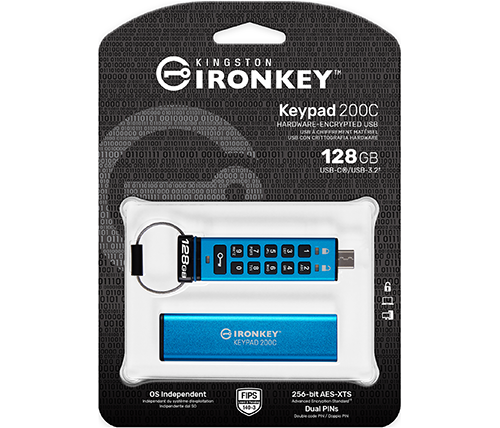 זכרון נייד מוצפן עם סיסמה Kingston IronKey Keypad 200 128GB USB-C