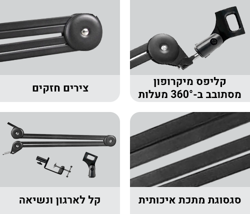זרוע למיקרופון Ivory Sound GAZ-40W – זרוע מתכווננת בצבע ajurעם קליפס 360°