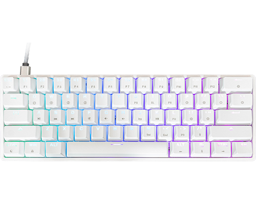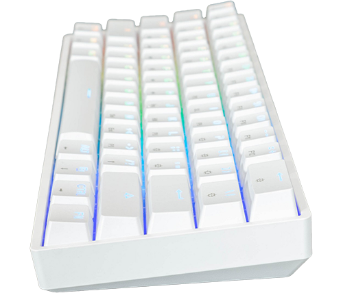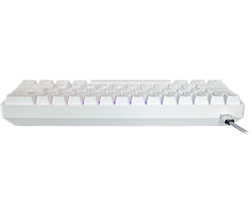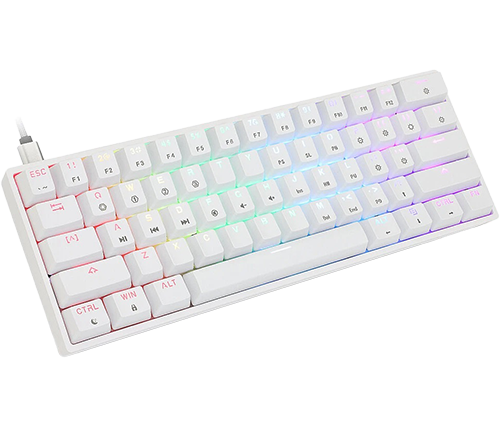 המקלדת היא קומפקטית בפורמט 60% – ללא מקשי F, חיצים ונאמפד.