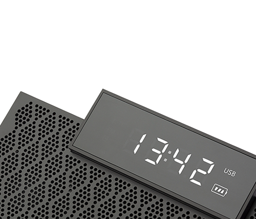 לרמקול תצוגת סטטוס ושעה דיגיטלית גדולה.