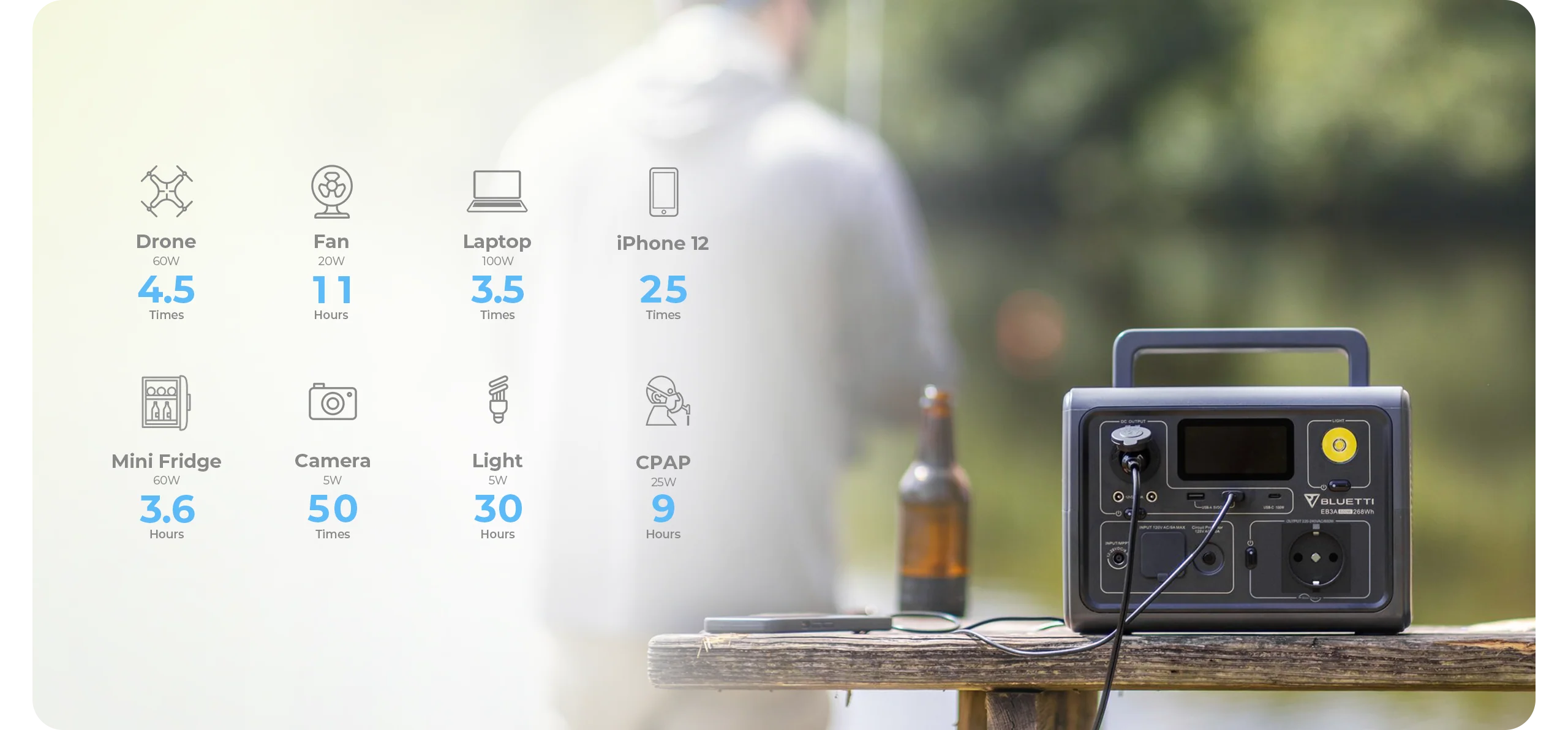 BLUETTI EB3A, נועד להיות חסכוני יותר באנרגיה מאשר גנרטורים מסורתיים, הוא כל כך קל מבחינת משקל, ועושה המון עבורך כדי לעזור לך להפחית את פליטת הפחמן לסביבה.