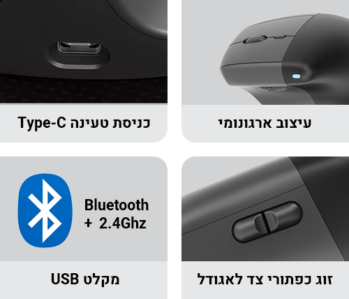 עכבר ארגונומי אנכי אלחוטי עם משדר בלוטוס, מקלט 2.4Ghz וסוללה נטענת חזקה Mizuki Vertical V30