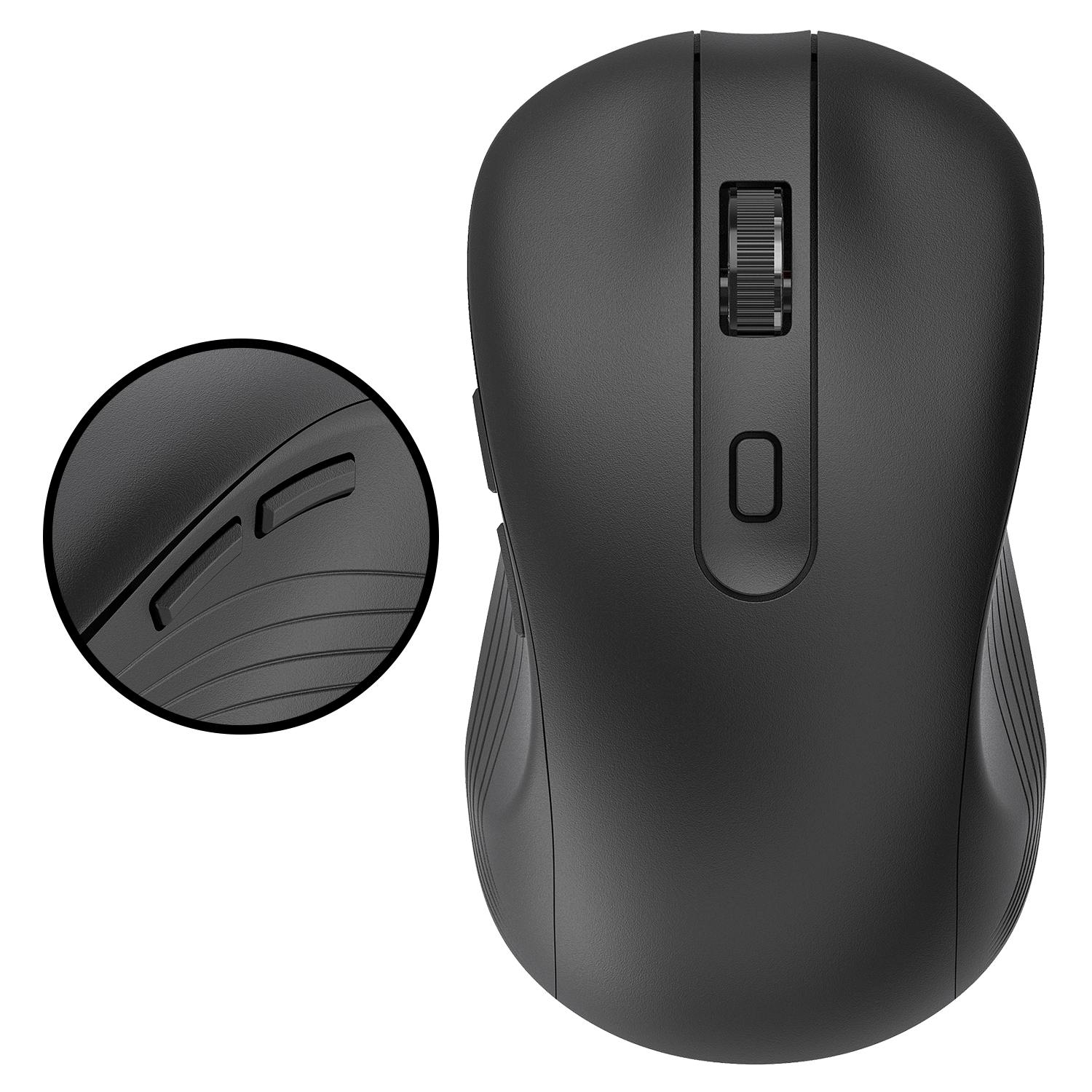 עכבר 6D בעיצוב אגונומי נוח לאחיזה, כולל זוג כפתורי צד לאגודל (אחורה / קדימה)