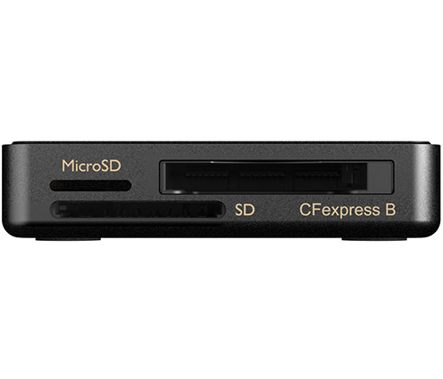 קורא הכרטיסים T-CREATE EXPERT R31 3-in-1 כולל חריצים לכרטיסי MicroSD, SD ו-CFexpress Type B. חריצי כרטיס הזיכרון תואמים לממשקי UHS-II, UHS-I ו-CFexpress 2.0, ומספקים פתרון מגוון לכל צורכי האחסון היצירתיים.