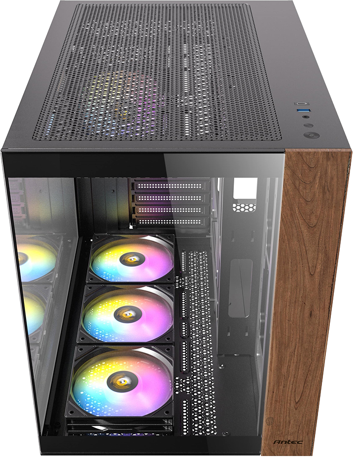 מארז מחשב Antec דגם CX800 Wood ARGB בצבע שחור/עץ עם 4 מאווררי 12 ס"מ ARGB, תומך קירור נוזלי עד 360 מ"מ