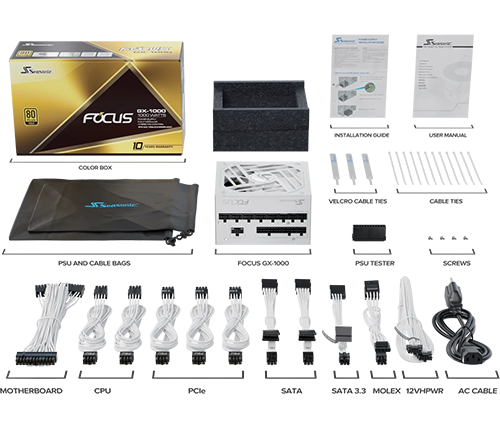 ספק כוח למחשב Seasonic Focus GX White ATX 3.0 80Plus Gold 1000W בצבע לבן